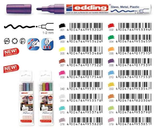 Only a few examples of the large variety of edding markers available: